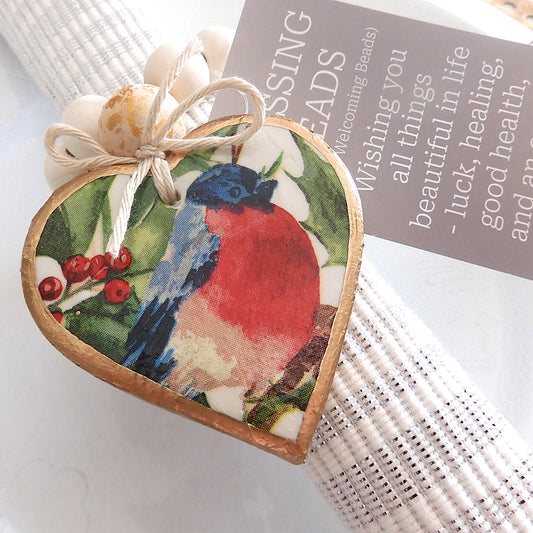 NAPKIN RING HEART BLESSING BEADS - CHRISTMAS RED ROBIN 7 Pieces