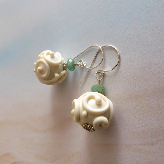 LAMPWORK GLASS BEAD EARRINGS 'WHITE CORAL'