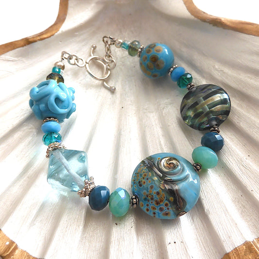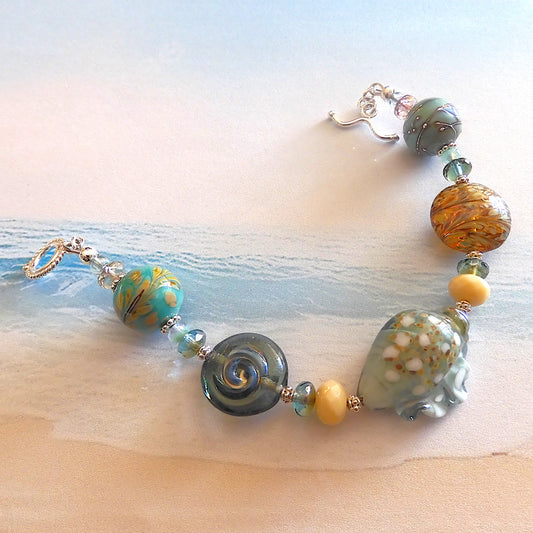 LAMPWORK GLASS BEAD BRACELET 'OCEAN FLOOR'