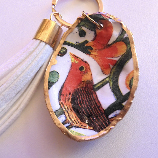 GOLD TASSEL KEYRING WITH OYSTER SHELL CHARM - BIRD