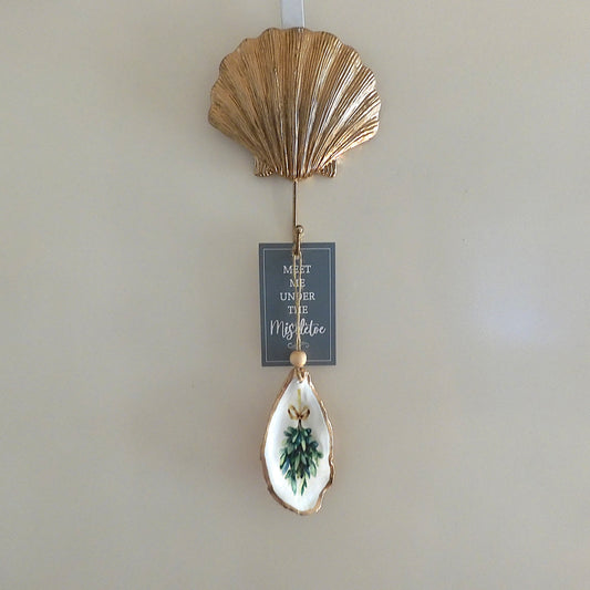 HANGING OYSTER SHELL CHRISTMAS ORNAMENT 'Meet me under the Mistletoe'