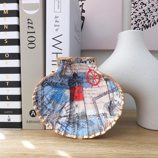 SCALLOP SHELL TRINKET DISH 'THE LIGHTHOUSE'