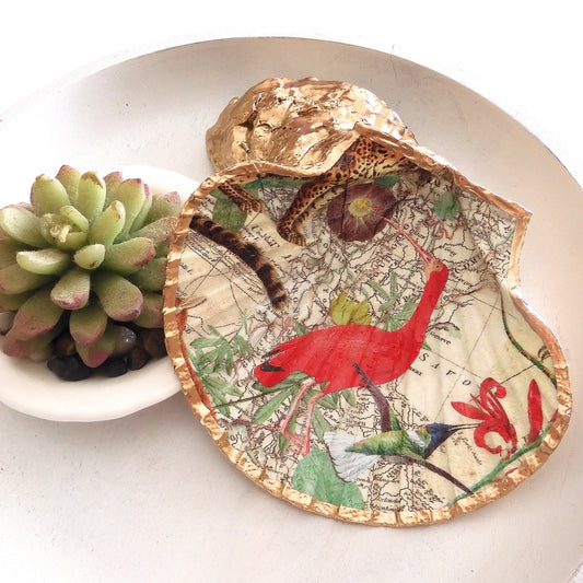 Sold outSCALLOP TRINKET DISH 'EXOTIC BIRD'
