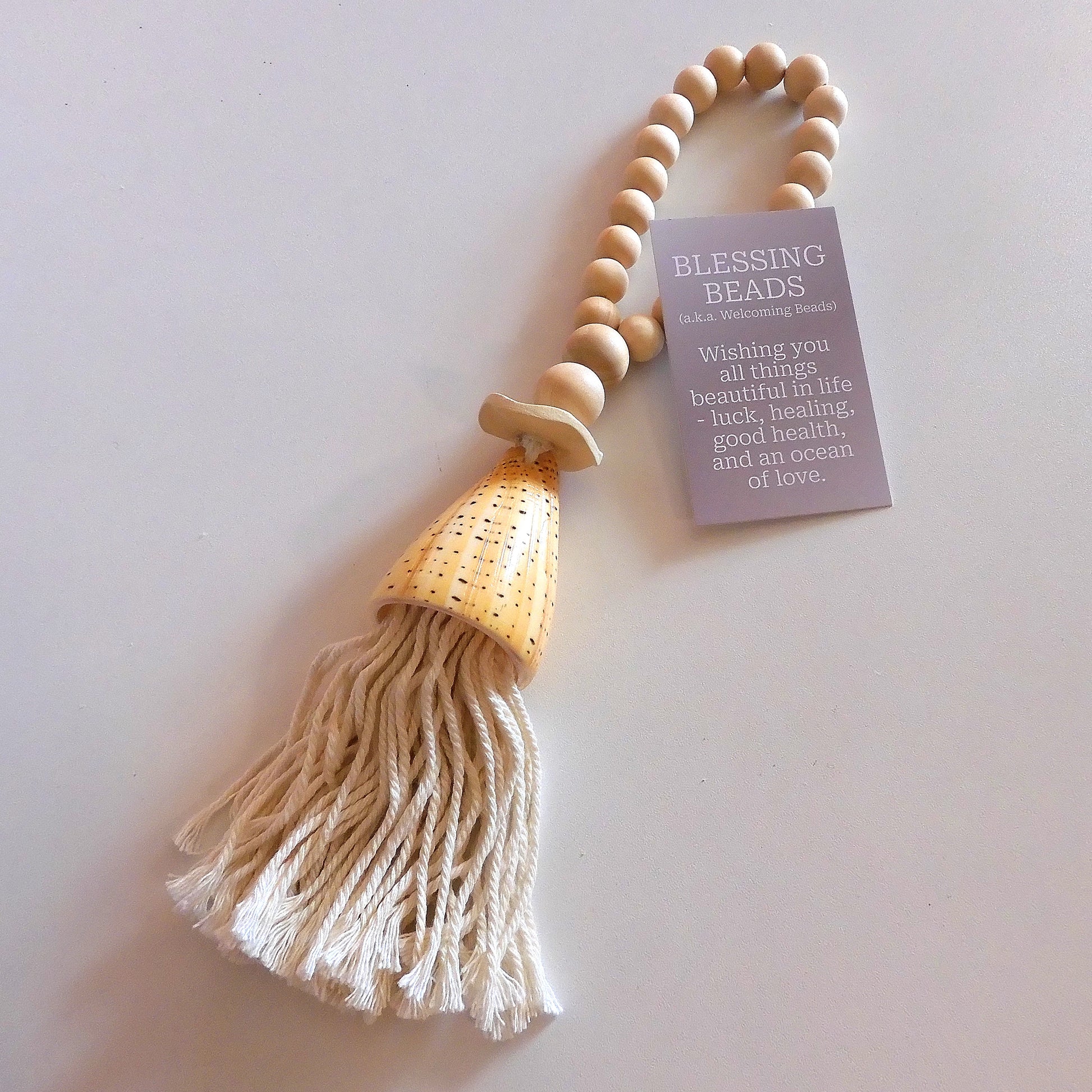 COASTAL BLESSING BEADS WITH CONUS SHELL & TASSEL 'NATURAL'