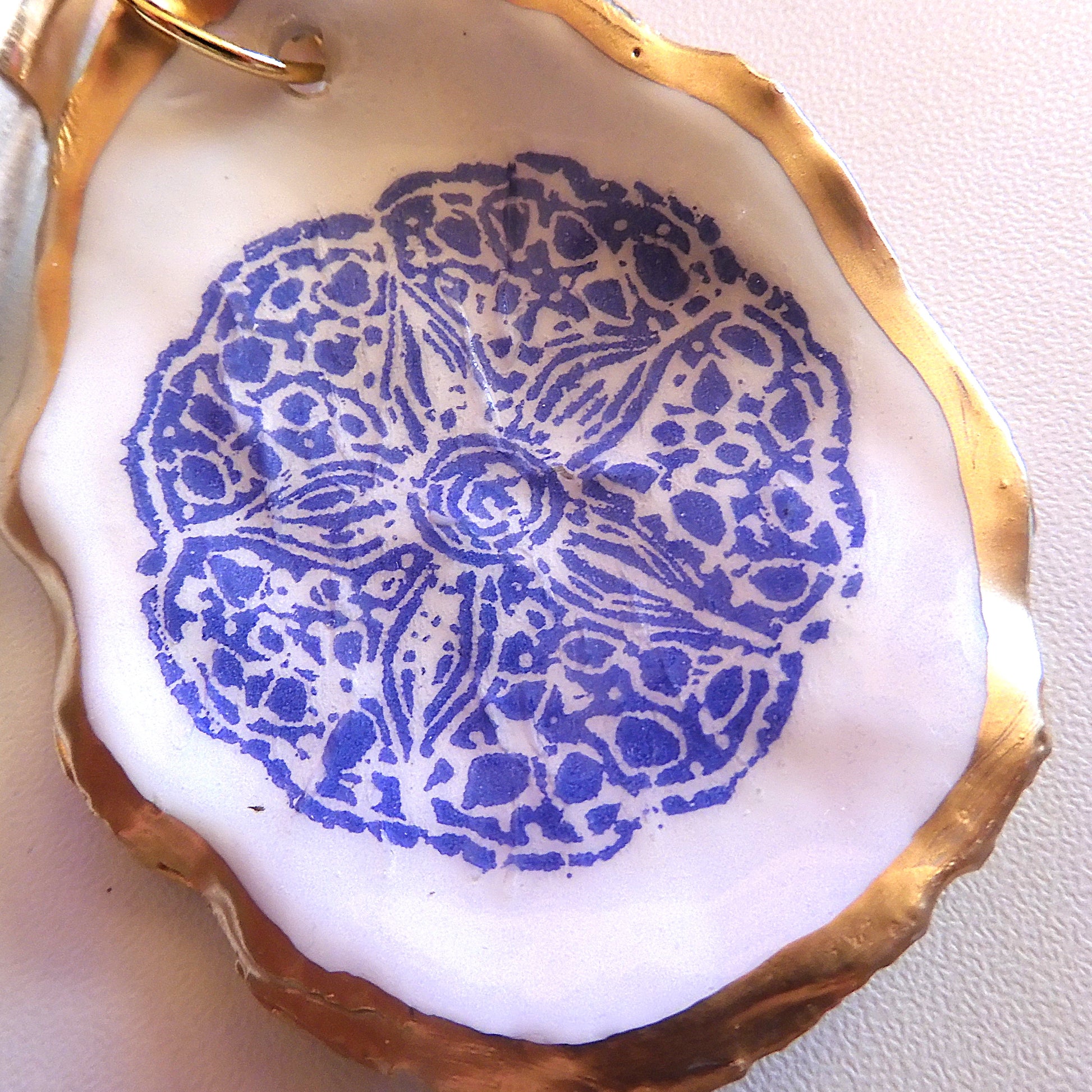 GOLD TASSEL KEYRING WITH OYSTER SHELL CHARM - Blue Sand Dollar