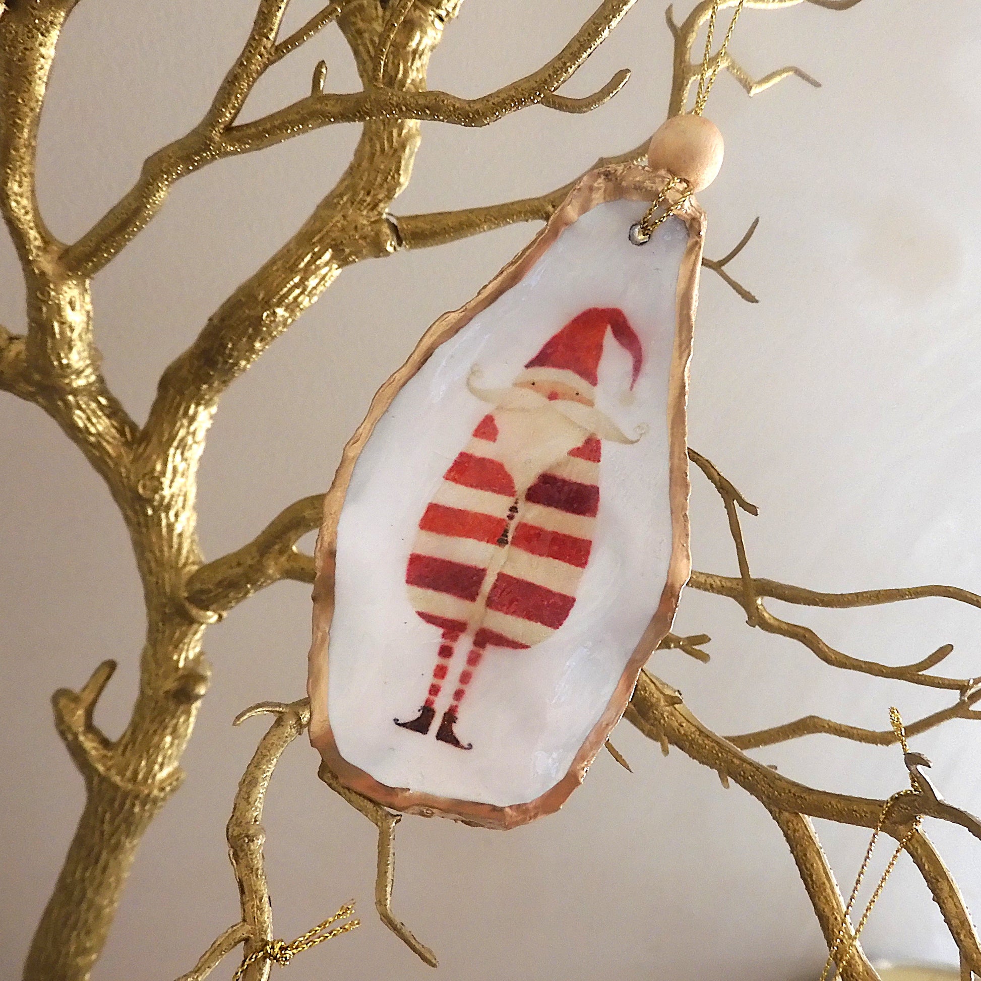 HANGING OYSTER SHELL CHRISTMAS ORNAMENT ' Striped Santa'