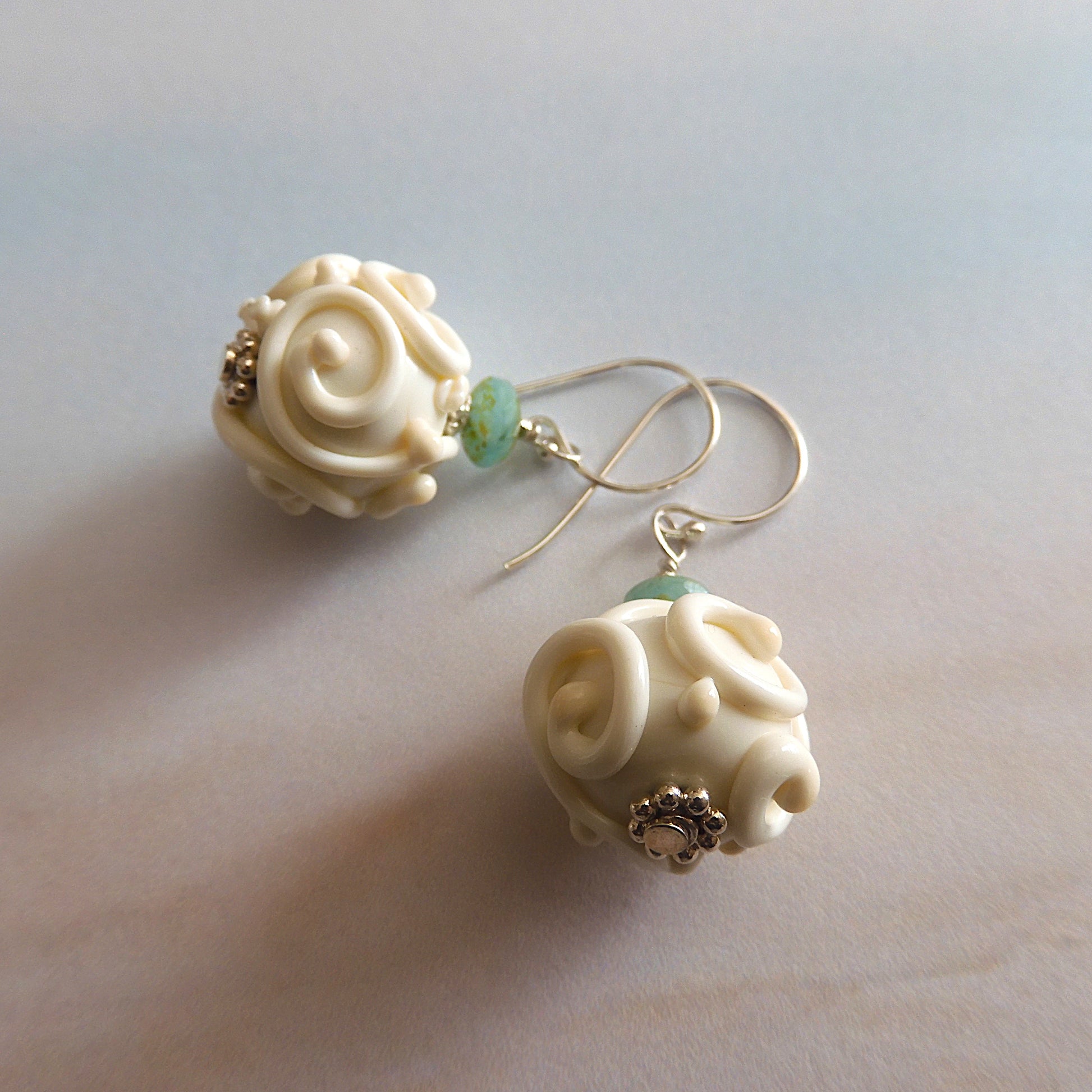 LAMPWORK GLASS BEAD EARRINGS 'WHITE CORAL'