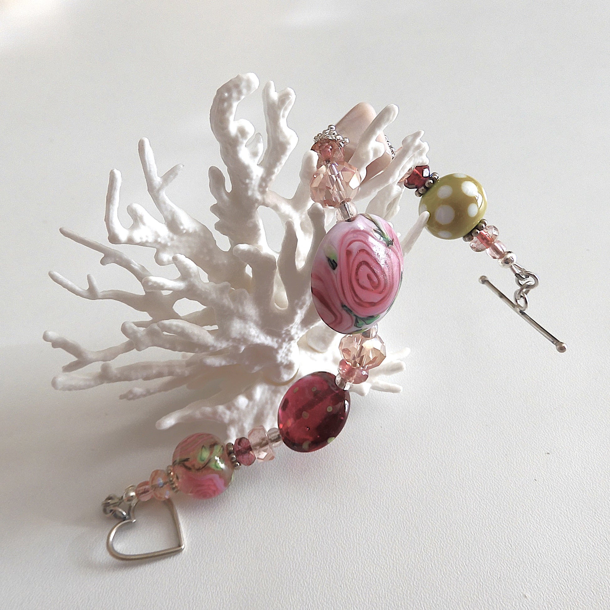 LAMPWORK GLASS BEAD BRACELET 'ROSE GARDEN'