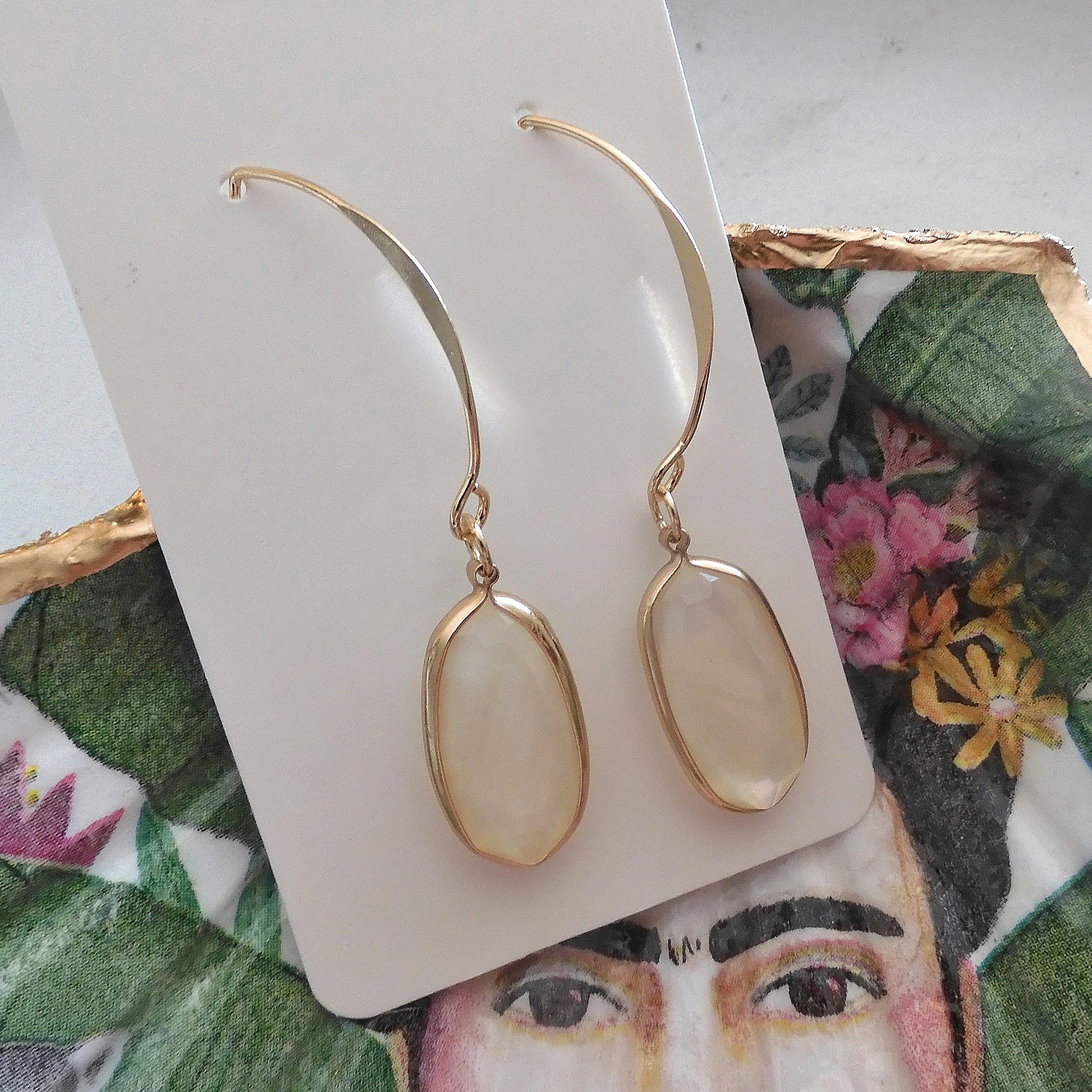 This inspirational gift box celebrates the life of Frida Kahlo with an extra-large Frida Scallop trinket dish (15cm) in limited edition print. Also nestled in this pack is a pair of abalone shell earrings (gold) in a calico bag, a hand poured fragrant scallop shell candle and a 'The World is your Oyster' tea towel. All nestled in a 20x20cm gift box and finished off with a simple gold seal and string wrap.