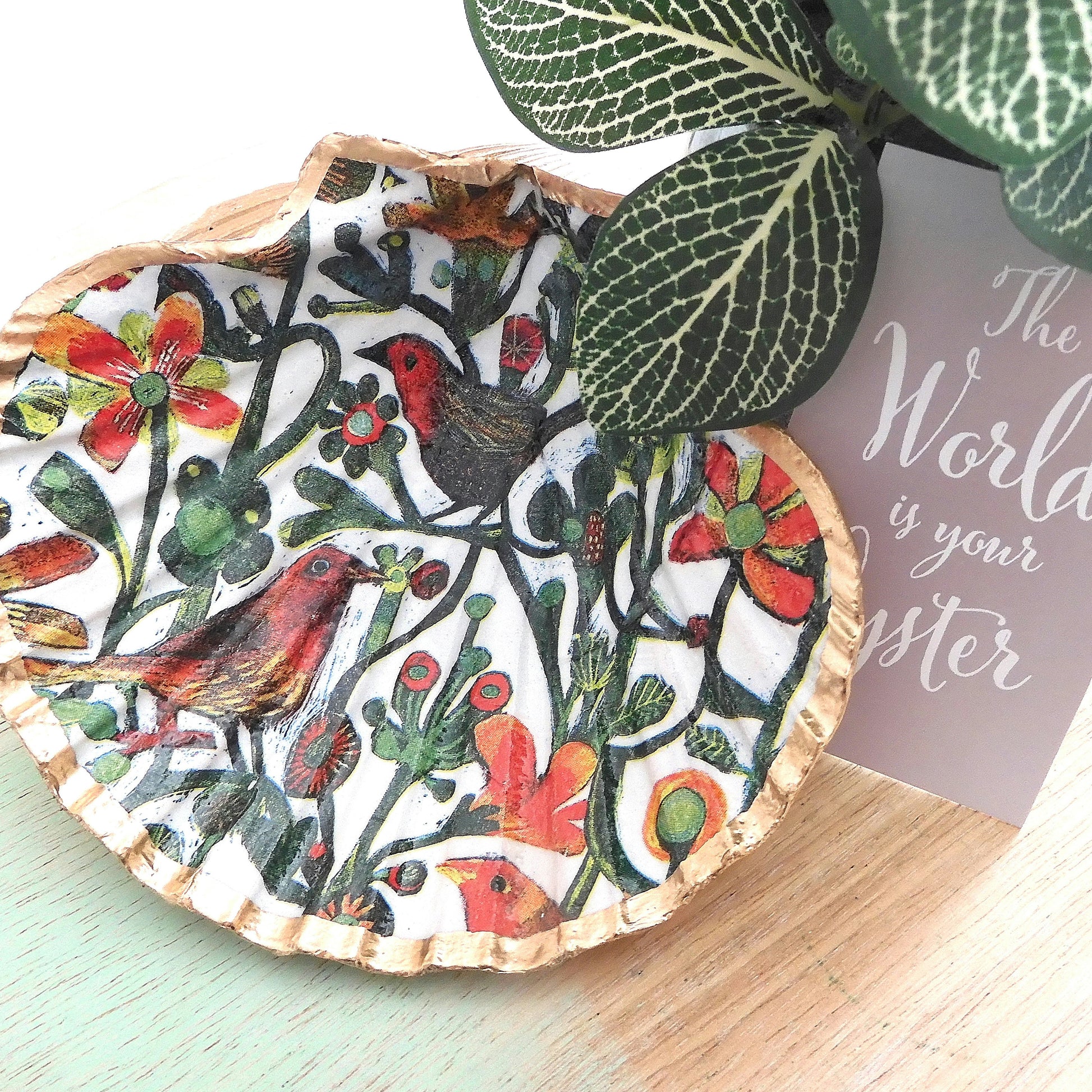SCALLOP TRINKET DISH - 'BIRDS IN THE BUSH'