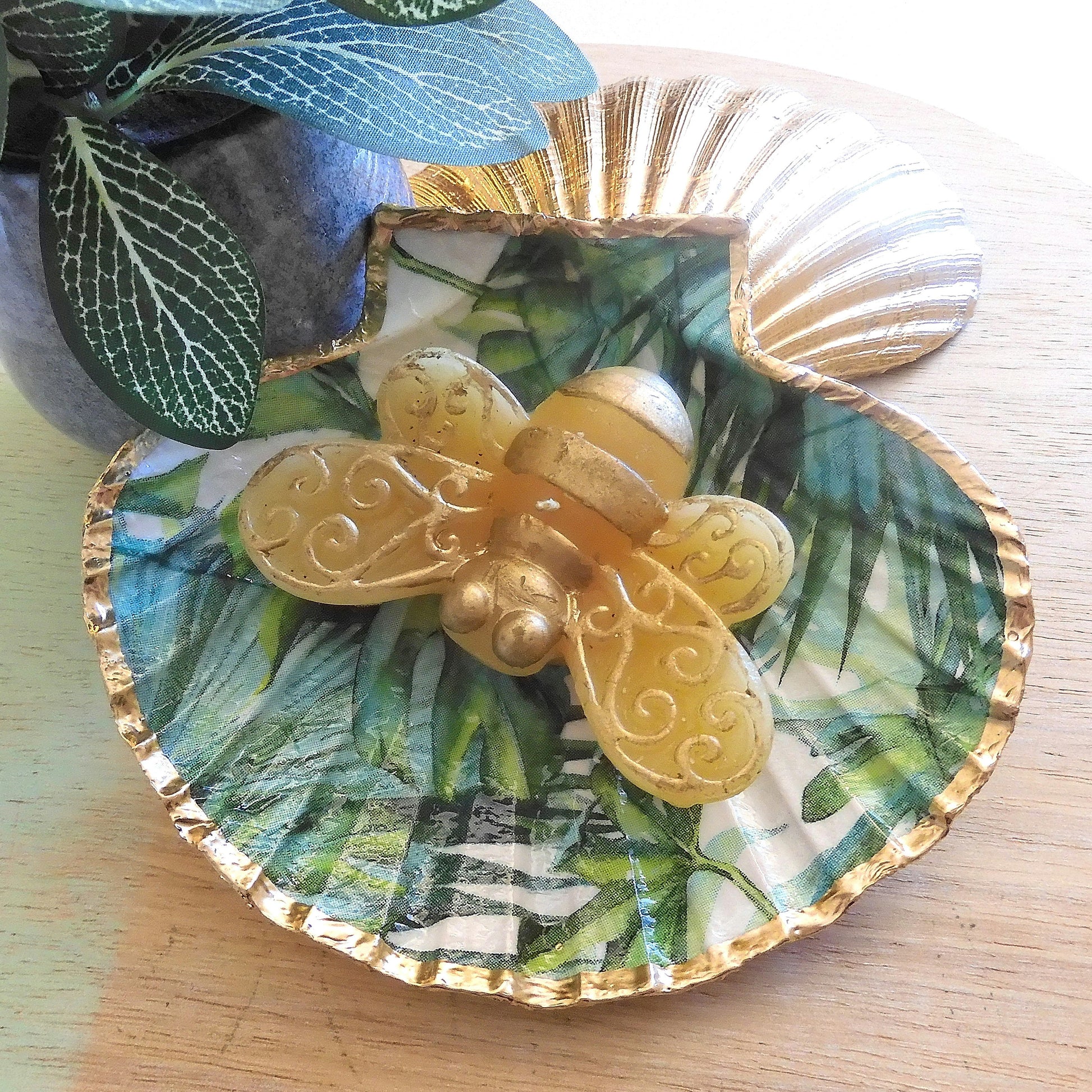 SCALLOP TRINKET DISH JEWELLERY HOLDER - 'PALM LEAVES'